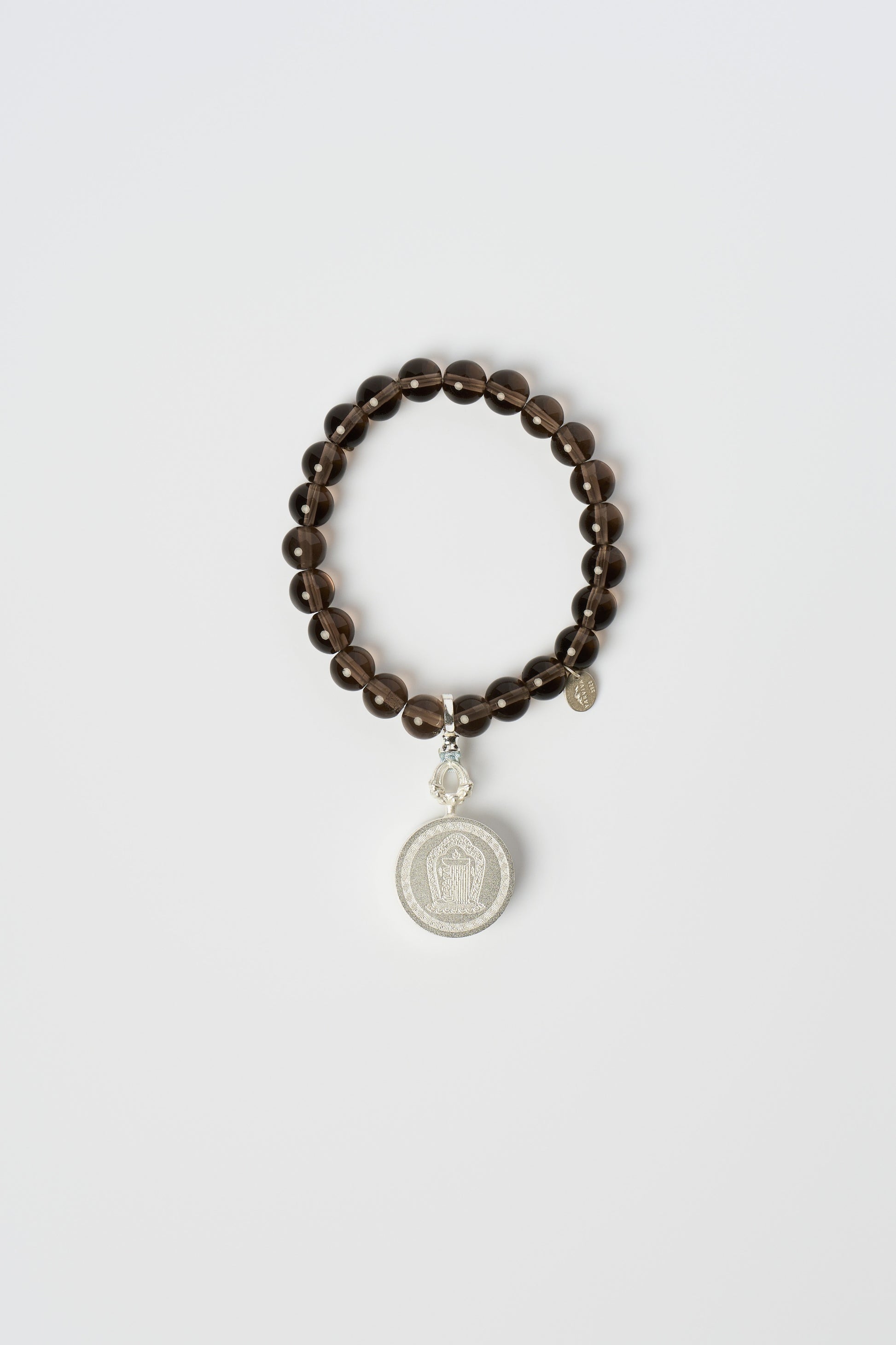 This bracelet features a golden eye pendant, symbolizing clarity and abundance. The hand-painted pendant is paired with natural obsidian beads, set in titanium steel and complemented by sterling silver fittings and clasp. Elegant and durable, it is a timeless piece that seamlessly blends artistry with everyday wear.